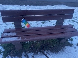 Anschließend brachten die Klimaschützerinnen ihre bunten, mit coolen Sprüchen versehenen Kunstwerke an Bänken in der Stadt an: „Kippe rein, Umwelt fein!“ 🚯