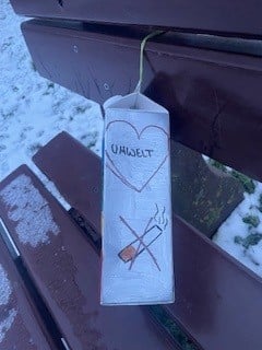 Beim letzten Klub-Treffen haben die Kinder Zigarettenkippen-Mülleimer aus leeren Milchpackungen gebastelt. ✂️